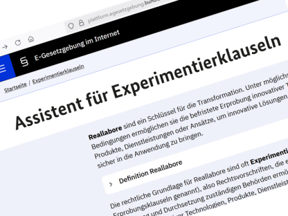 Auf der Plattform für E-Gesetzgebung des Bundes wurde eine neue Anwendung zur Erstellung von Experimentierklauseln veröffentlicht. Darin kann die Erforderlichkeit einer Experimentierklausel für ein Regelungsvorhaben geprüft und diese dann Schritt für Schritt ausformuliert werden.