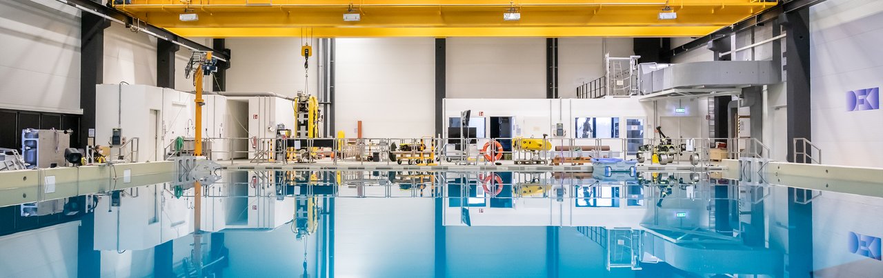 Die rund 1.300 m² große Maritime Explorationshalle dient dem Test und der Entwicklung neuer Robotertechnologien für den Einsatz auf und unter Wasser. Konkrete Missionsszenarien aus dem Alltag der Offshore-Industrie können nachgestellt, Manöver gefahren und die Fähigkeiten zukünftiger Systeme entwickelt, getestet und demonstriert werden. Darüber hinaus lassen sich Systeme für die Weltraumrobotik in simulierter Schwerelosigkeit testen. Die Infrastruktur der Halle besteht aus einem Salzwasserbecken, zwei kleineren separaten Testbassins, einem Virtual-Reality-Labor, einer Druckkammer sowie einer vollständigen technischen Einrichtung, die von Kränen bis zu weiteren Arbeitslaboren reicht. Das Kernstück der Testanlage ist das 23 Meter lange, 19 Meter breite und 8 Meter tiefe Becken. Mit 3,4 Millionen Litern Salzwasser schafft es Forschungsbedingungen, die unabhängig von der Witterung sind, sich kontrollieren und beobachten lassen und zudem realitätsnahe Bedingungen für den Robotereinsatz bieten.